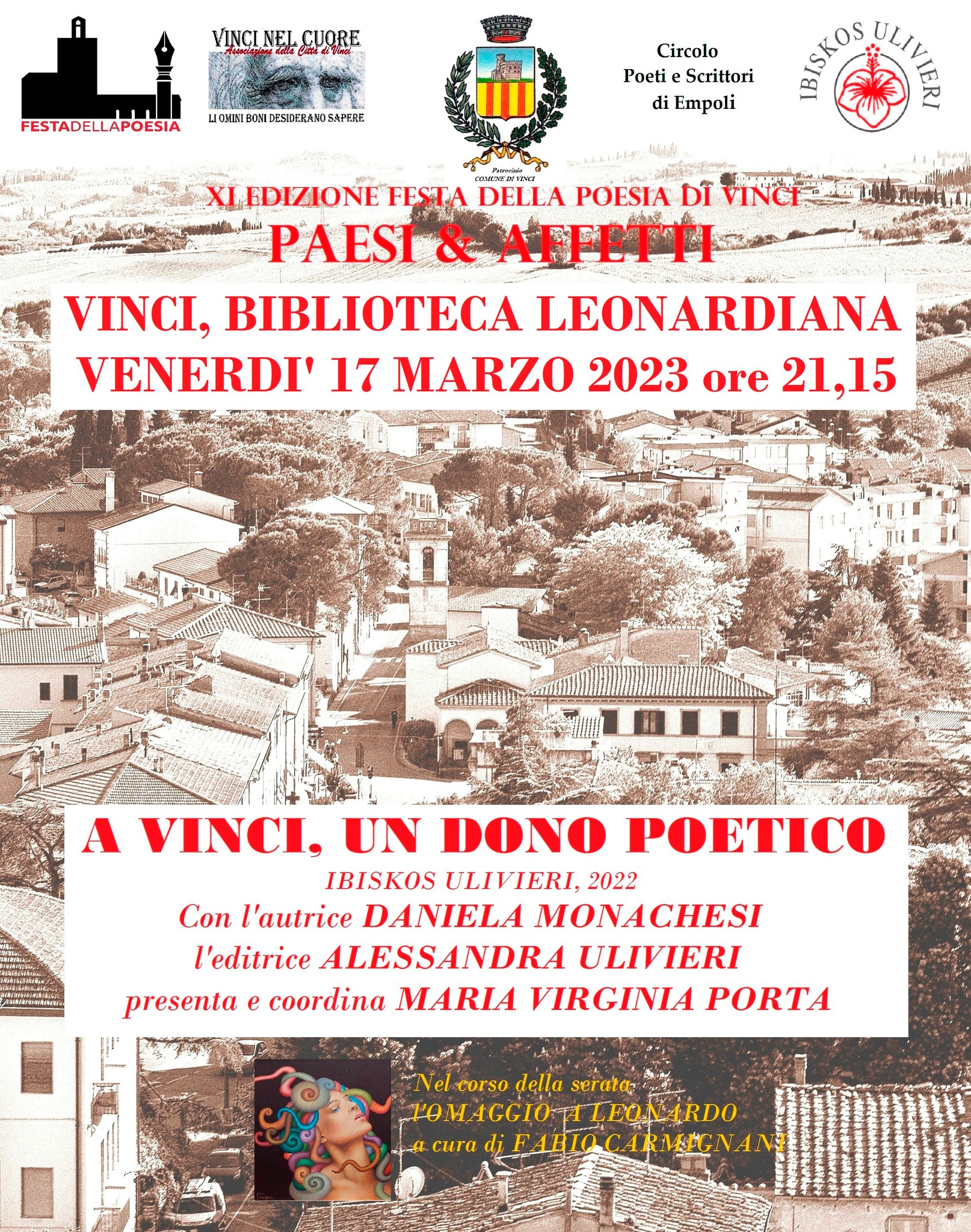 Venerdì 17 , ore 21.15 Biblioteca Leonardiana: Paesi & Affetti. A Vinci un dono poetico. Cento sonetti dedicati a Vinci e ai Vinciani