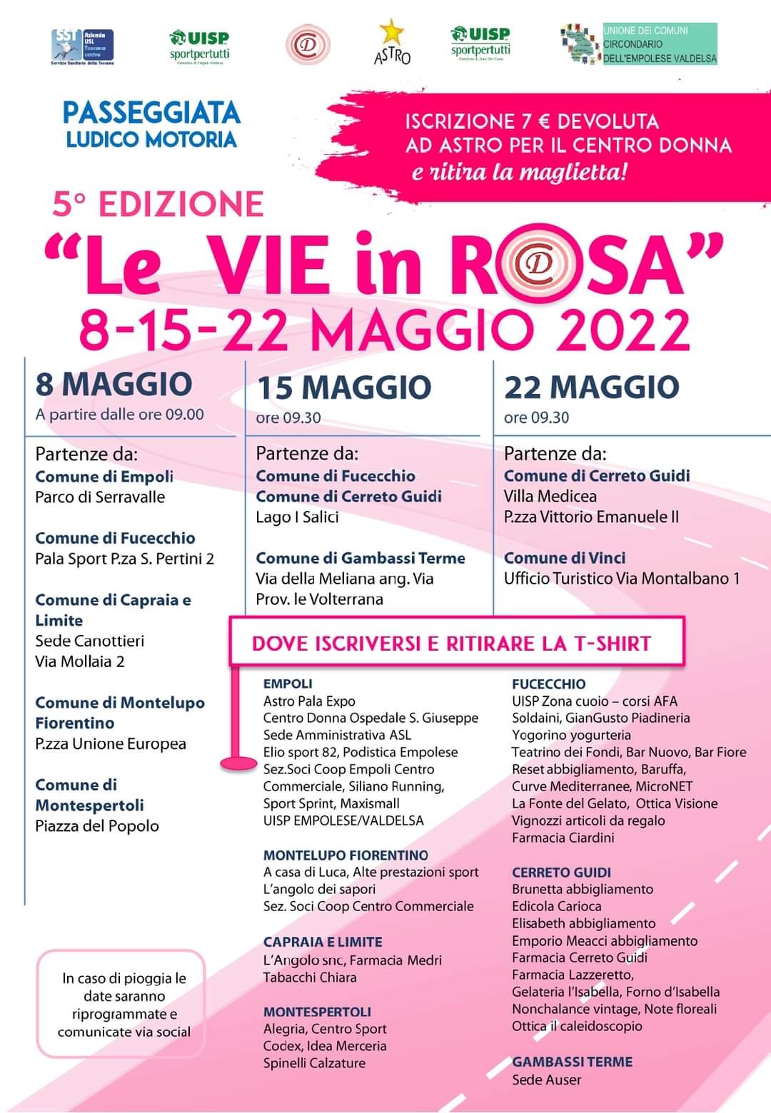 Passeggiata ludico-motoria a sostegno del Centro Donna dell'Ospedale San Giuseppe di Empoli. Quota di partecipazione € 7,00.